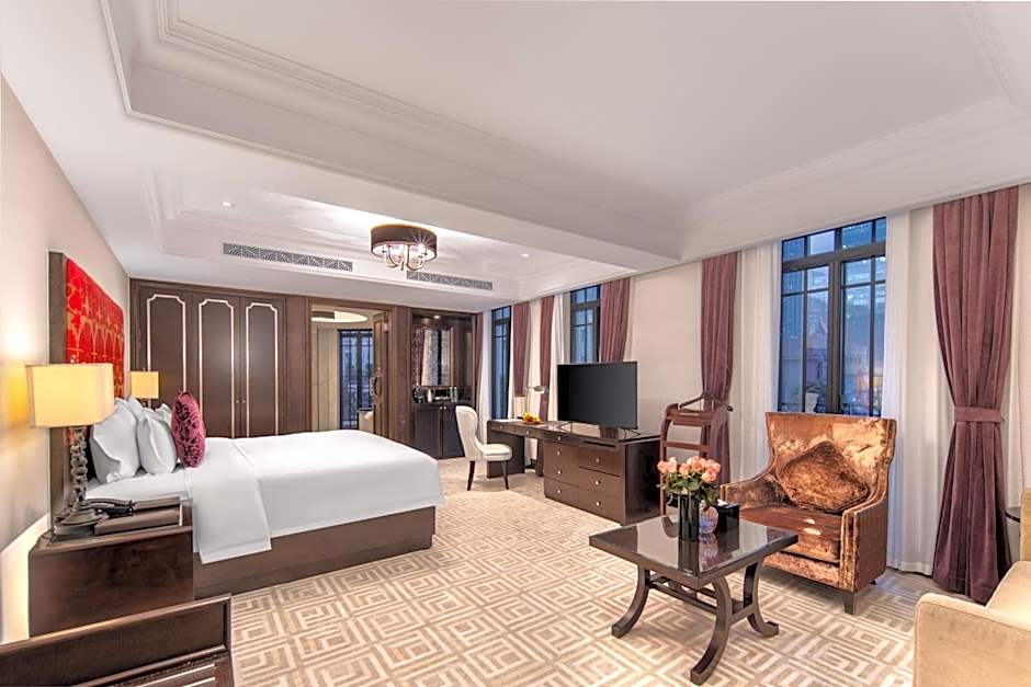 Make yourself at home in this spacious sanctuary inspired by a Modern Shanghai Residence and rich Art Deco heritage.The luxury of additional livingspace and an oversize marble bathroom contributes to the residential ambiance of these charming accommodations in Shanghai